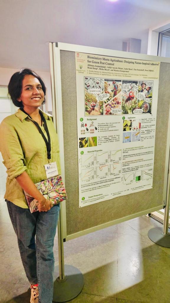 Abinaya won the prize for the best poster at the Bio-Joining Conference 2024 for her poster: Biomimicry Meets Agriculture: Designing Nature-Inspired Adhesives for Green Pest Control.
